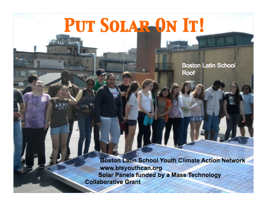 Cate Arnold, a History teacher at Boston Latin School (BLS), showed An Inconvenient Truth to her students in January 2007. The critical issues of climate change and sustainability generated so much interest that students sent out a school-wide invitation to join in founding a sustainability and climate club. Ninety students came to the first meeting, and the BLS Youth Climate Action Network (YouthCAN) was created. YouthCAN’s accomplishments are as broad and impressive as the impact that the organization is having on the culture of civic engagement and public advocacy at BLS and in the larger Boston Public School system. YouthCAN’s most ambitious and innovative goal is to create a state-of-the-art Shared Green Roof and Community Learning Center (Shared Green Roof), on the BLS rooftop.