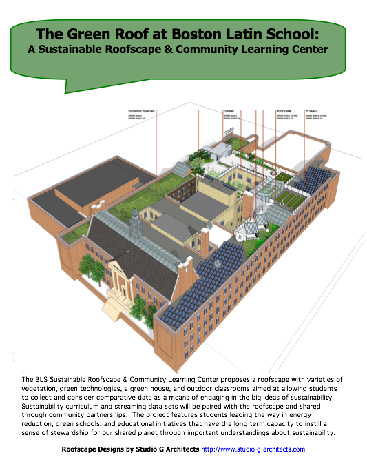 They will come from the Boston Latin School - with BLS maintaining its rigorous classical curriculum, instilling in its students a deep appreciation for the value of intellectual curiosity, hard work, civic engagement and respect for knowledge – while at the same time becoming a nationally recognized model and innovator in providing its students with the essential interdisciplinary systems thinking, creative problem-solving and hands-on-learning experiences so vital for success in the 21st century. This new breed of leaders will come from Boston Latin School, after they literally and figuratively ascend to the Shared Green Roof.