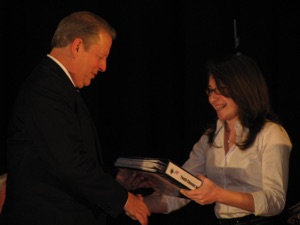Rebecca Park presents former Vice President Al Gore with BLS Youth CAN Information